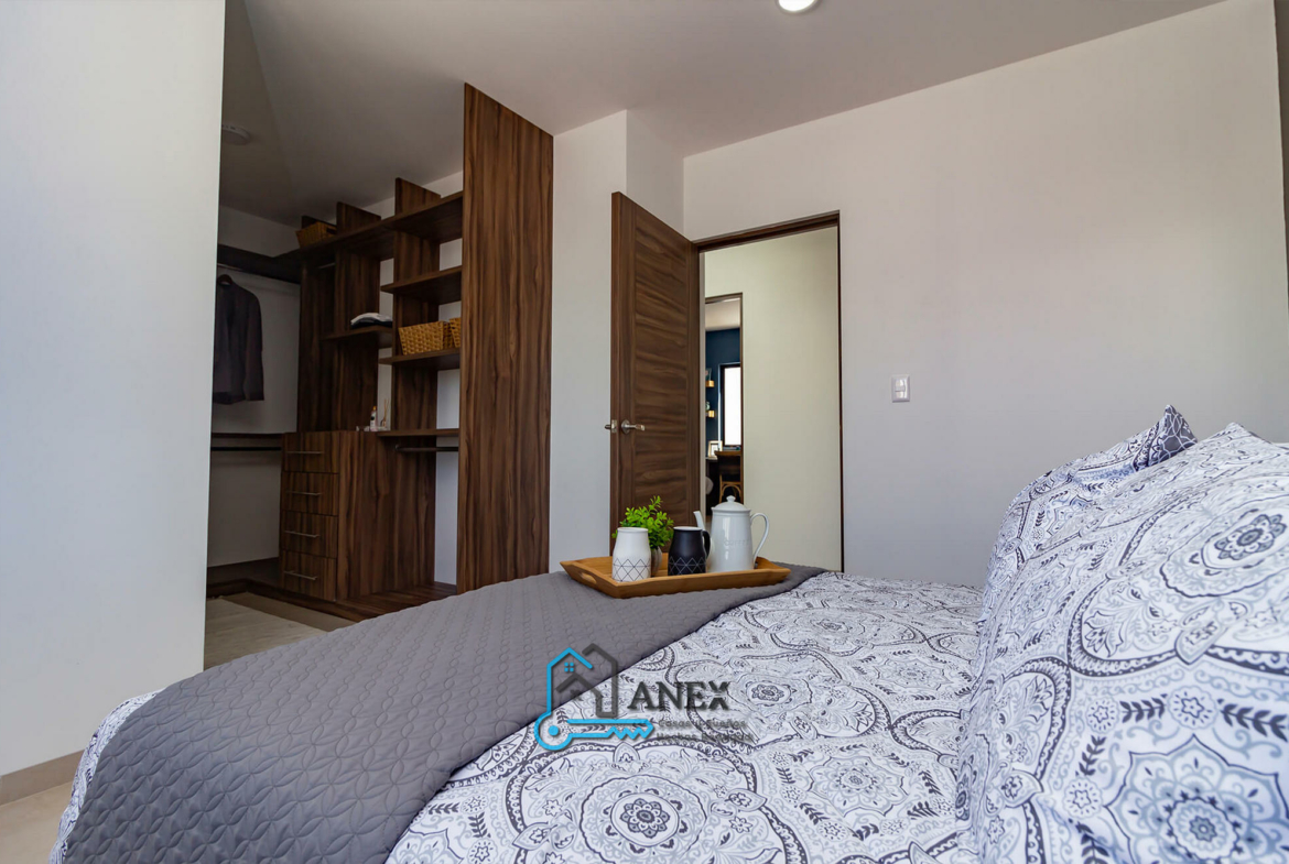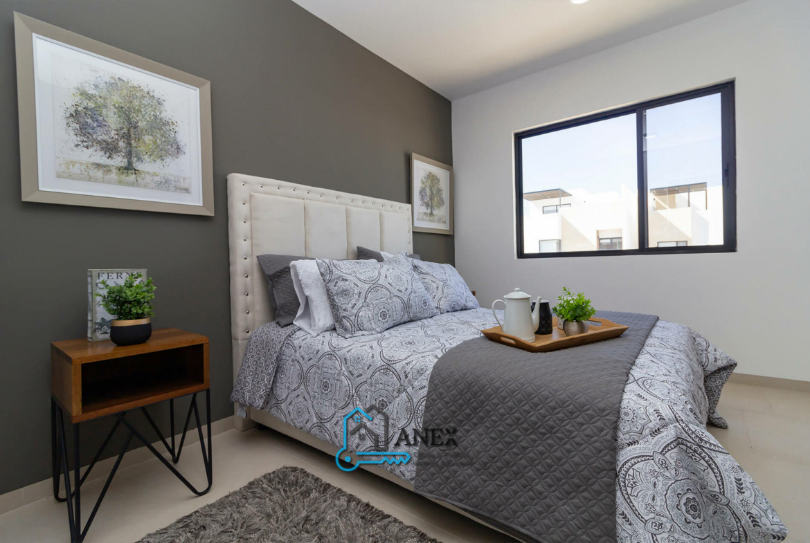 La Casa “Flores de Durazno” destaca por su diseño inteligente y funcional. Cuenta con tres recámaras, ideales para una familia en crecimiento, y dos baños y medio, garantizando la privacidad y comodidad para todos. La recámara principal incluye un vestidor y baño propio, un espacio perfecto para relajarse y disfrutar de la tranquilidad. Además, dispone de un área de lavado techada, una característica muy práctica para mantener tu hogar organizado. Dos espacios de estacionamiento completan la comodidad de esta propiedad.