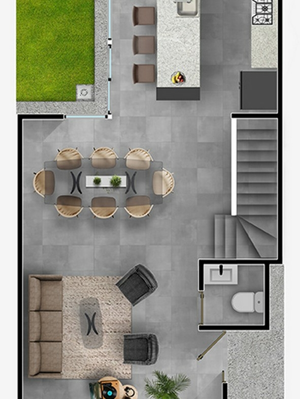La Casa “Tulipán” cuenta con tres recámaras y dos baños y medio, proporcionando comodidad y privacidad para toda la familia. La recámara principal se destaca por su amplio vestidor y baño propio, creando un oasis de tranquilidad. Además, incluye un área de lavado techada para mayor funcionalidad. El diseño inteligente maximiza el espacio y la luz natural, creando una atmósfera acogedora e iluminada. Dos espacios de estacionamiento garantizan la comodidad para ti y tus invitados.