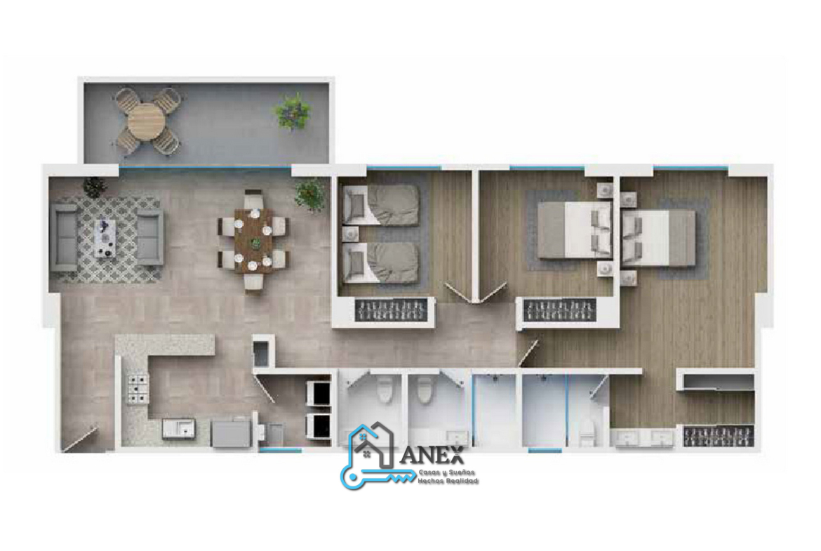 - Tres recámaras: Amplias y luminosas, perfectas para el descanso y la privacidad.